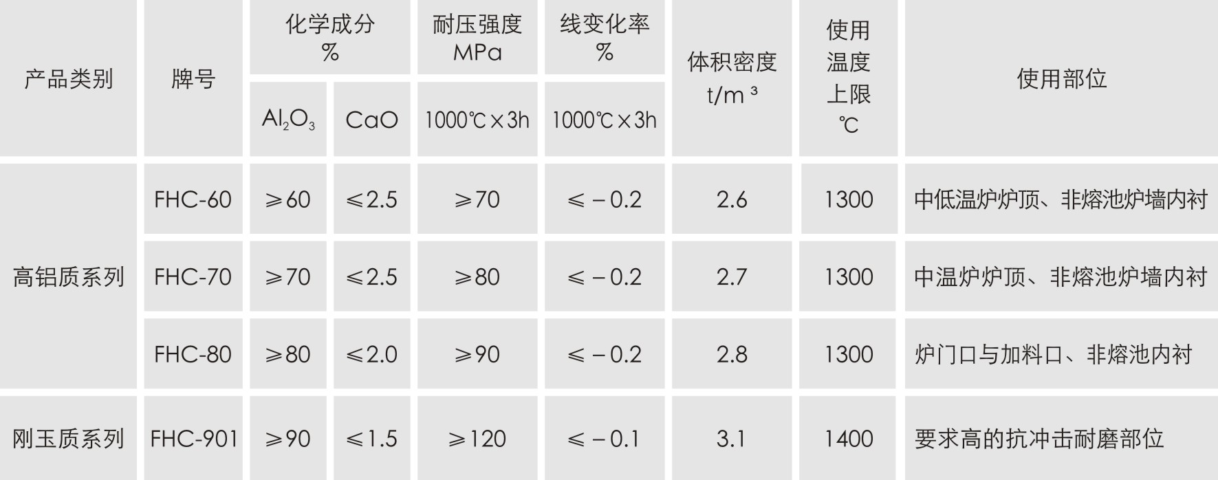 主要特性:水泥含量低、燒后強度高、中溫強度不下降;