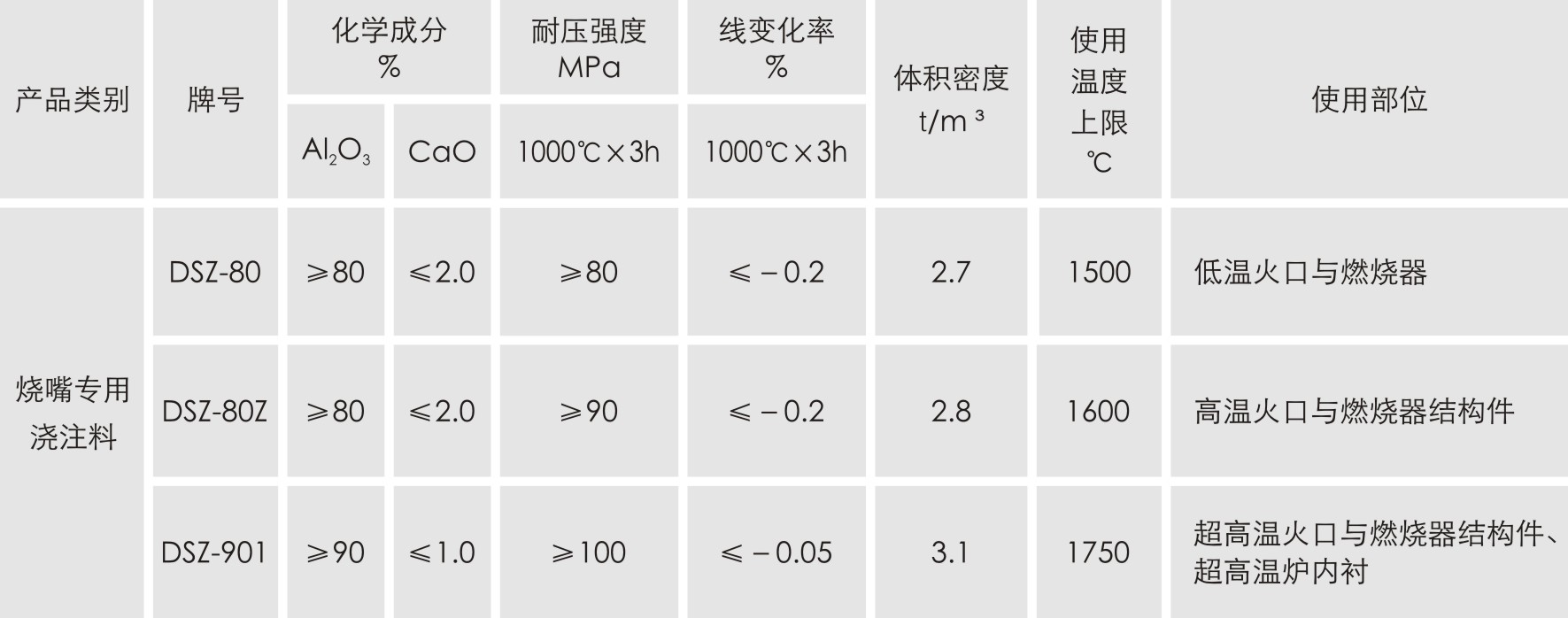 主要特性:耐火度高、荷重軟化溫度高,熱震穩定性好;